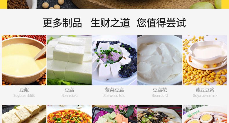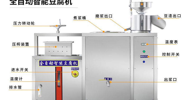旭眾智能豆腐機專業(yè)生產(chǎn)數(shù)種豆?jié){制品,穩(wěn)定高效,采用磨漿分離機和煮漿機,出品率高于其它設(shè)備,擁有自動控制系統(tǒng),還增加數(shù)碼溫度控制儀,對煮漿隨時進行監(jiān)控,同時對不同產(chǎn)品所需溫度自行設(shè)定,當(dāng)煮漿達到設(shè)定溫度時,具有自動提示及報警功能;整機采用不銹鋼材質(zhì)制作,質(zhì)量卓越,占地面積小,安裝簡單,工藝先進,一臺設(shè)備只需一人操作,省時、省力、省工。