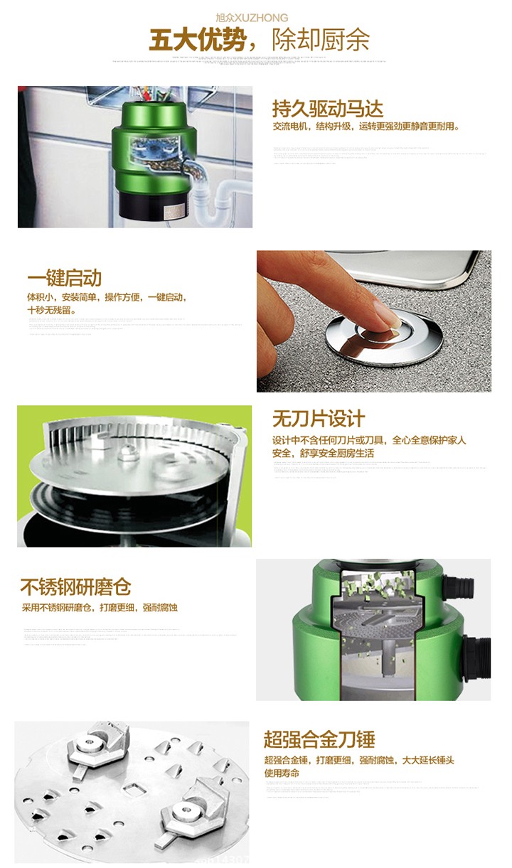 DCLQ38-廚房垃圾處理器,該機(jī)擁有獨(dú)特的粉碎功能,使所有垃圾研磨吸毒真正低于3毫米,用戶不用為管道堵塞而煩惱,粉碎后粗、細(xì)兩種垃圾通過(guò)濾孔自動(dòng)分離,成漿狀的細(xì)垃圾隨水流流入管道,粗的垃圾會(huì)稍停留在研磨倉(cāng)繼續(xù)粉碎,形成粉末狀后,再隨水流流入管道,客戶可以放心使用。