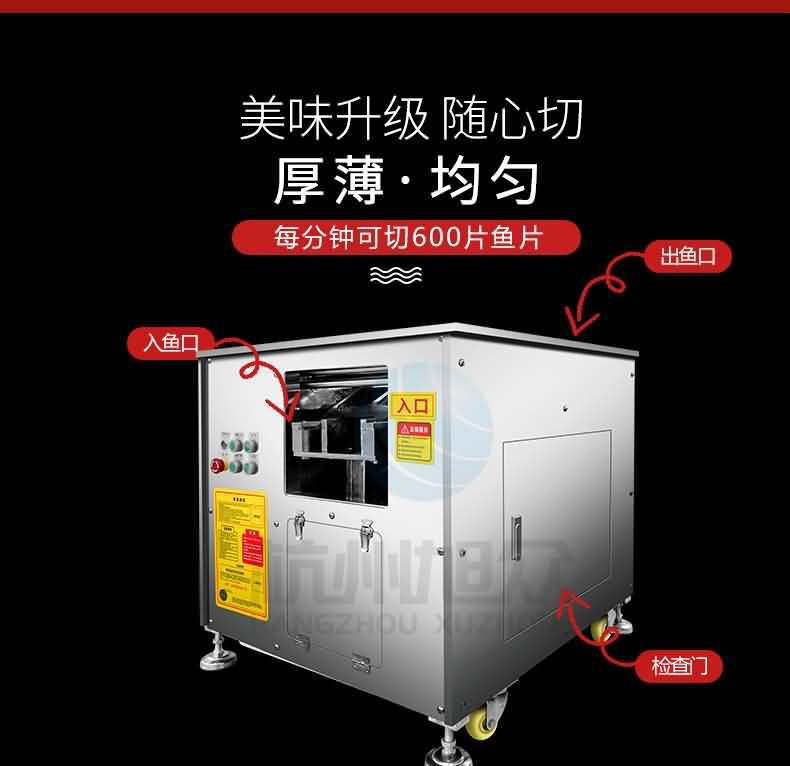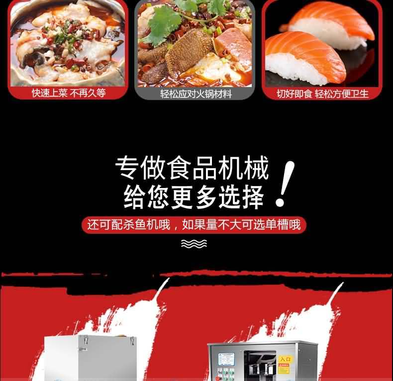 斜切魚片機均適合切各類剔好骨頭的魚,五花肉,牛百葉,豬肝,牛肝,魷魚等新鮮或完全解凍不帶骨刺的食材??蛻羧后w:火鍋店,酸菜魚,水煮魚店,機關(guān)食堂酒店等各類餐飲公司。