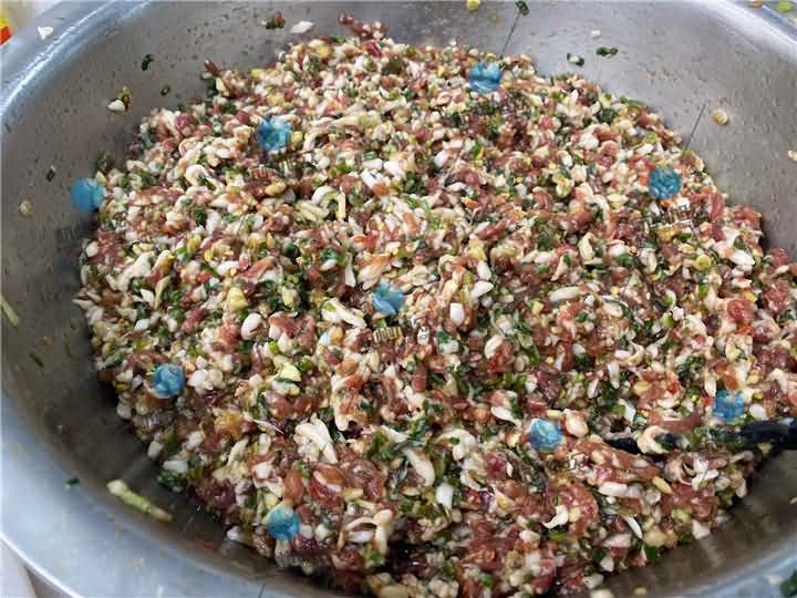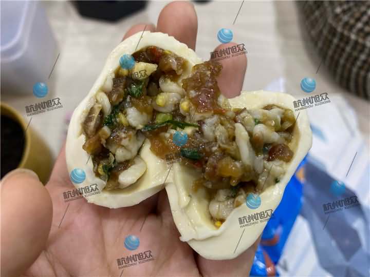以往來考察包子機(jī)的客戶一般是2-3人便可,而今日來考察包子機(jī)的這波客戶至少也得十人,而且他們考察的包子機(jī)的方式特別的有儀式感,全員都行動(dòng)起來了。可以說小編我跟拍了一個(gè)上午加下午一點(diǎn)時(shí)間才終于結(jié)束,那么我就簡(jiǎn)單說下早上試的第一次,主要考察試機(jī)設(shè)備XZ-290AS卷面式包子機(jī),先拌餡料,蔥花豬肉酸加些調(diào)味料紅椒等等,包子做好后也蒸出來嘗了下口感,看著挺清淡的肉包子,等你嘗了兩口后就會(huì)發(fā)現(xiàn)這包子挺辣的。