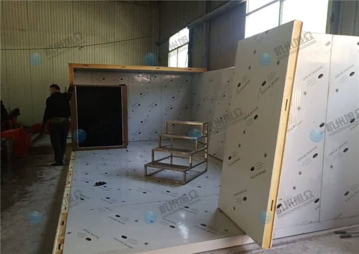 【我再也不想要因?yàn)樘鞖獾脑蚨粩喔淖兠追酆娓伞窟@句話(huà)是很多在做米粉生產(chǎn)線(xiàn)的老板們都煩惱的事,每天都要看著天氣預(yù)報(bào),有時(shí)預(yù)報(bào)不準(zhǔn)確人員趕不及米粉都潮濕了,于是老板們便在網(wǎng)上搜索米粉烘干機(jī),撥打4008852117了解到旭眾空氣能烘干機(jī),我們不僅提供烘干機(jī),也能定做烘干房一體機(jī),食品廠(chǎng)老板一聽(tīng)立馬先定購(gòu)一套小型的設(shè)備,想試試自然晾干與空氣能烘干機(jī)烘干出來(lái)的米粉質(zhì)量對(duì)比后,后續(xù)再?zèng)Q定是否再訂購(gòu)大型的。于是便給他安排了小型烘干房正安裝現(xiàn)場(chǎng)中: