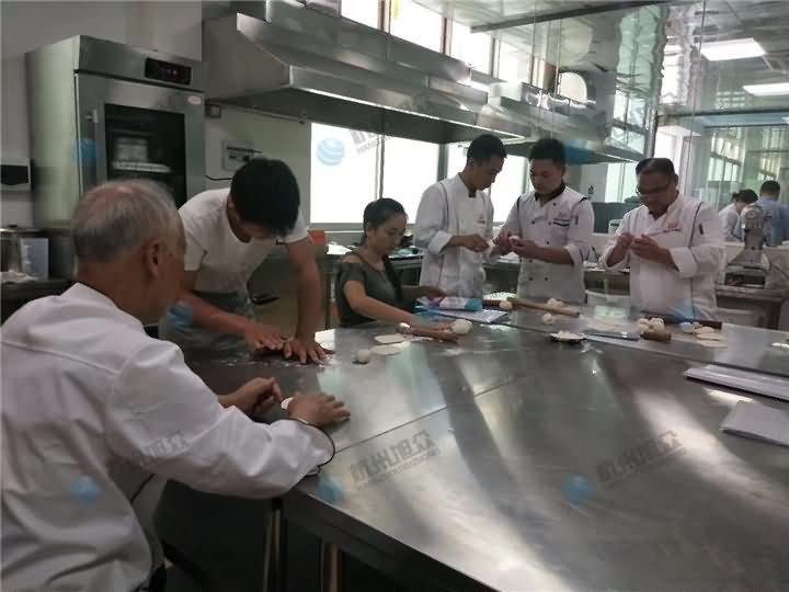 面點大師親自教學,在場的學生都是購買過酥餅機的客戶,來廠學習酥餅工藝,咨詢熱線400-885-2117