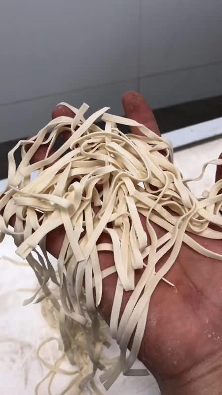 面條機(jī)剛剛做的面條哦,生產(chǎn)效率高,面條均勻且沒(méi)有毛邊,有韌性光滑細(xì)膩!