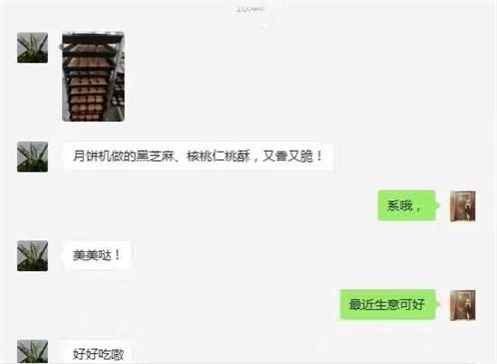 非常感謝高總給我的反饋信息,去年定購的月餅機(jī)生產(chǎn)線做得效果這么好,感謝高總對我們產(chǎn)品的認(rèn)可!旭眾月餅機(jī)一機(jī)多用,還可以做核桃喔,效果相當(dāng)?shù)暮?!祝高總天天大賣核桃酥,生意財源滾滾來,盤滿缽滿興旺發(fā)達(dá),事業(yè)蒸蒸日上,鵬程萬里!