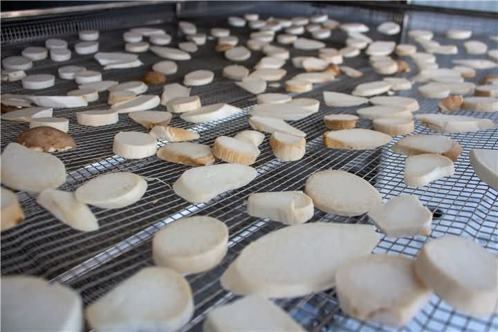 蘑菇類的一般含水量比較大,烘干過程過中要注意排濕,前期溫度不能過高,否則容易烘熟,使烘出來的成品顏色變黑。但也排濕過量不然色澤偏白,失去香味,一般排濕時間不超過6小時為宜。