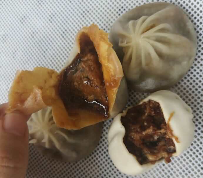 以上是由新款XZ-960包子機(jī)所生產(chǎn)的湯包,再對比下平常包子機(jī)所做的湯包,面皮厚薄一眼就看得出來: