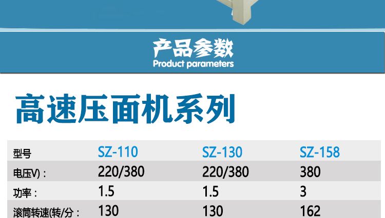 高速壓面機(jī)系列,本機(jī)壓面、揉面一機(jī)兩用,用于制作面條、云吞皮、糕點(diǎn)、面點(diǎn)等食品,生產(chǎn)的產(chǎn)品韌性大、耐煮、不易斷,適合于賓館、飯店、食堂、面包廠及各類面點(diǎn)加工單位或個(gè)體商戶使用。