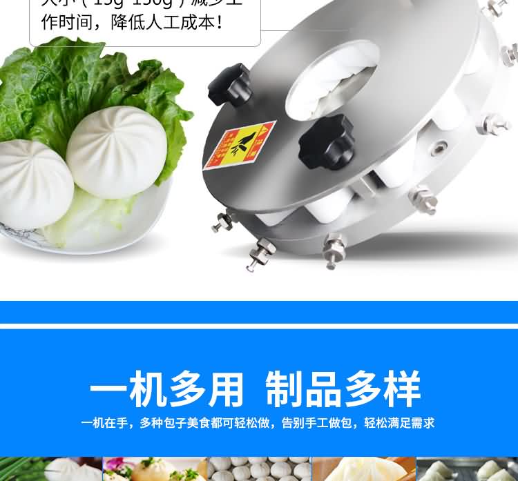 設(shè)備工作效率相當(dāng)于8-12人工人同時手工制作,是現(xiàn)在招工難,高薪水,人員不穩(wěn)定的時期的理想、高效的設(shè)備,適用于賓館、飯店、學(xué)校、機(jī)關(guān)、食堂、饅頭或包子加工廠、早餐工程店及速凍食品廠。