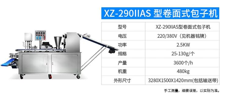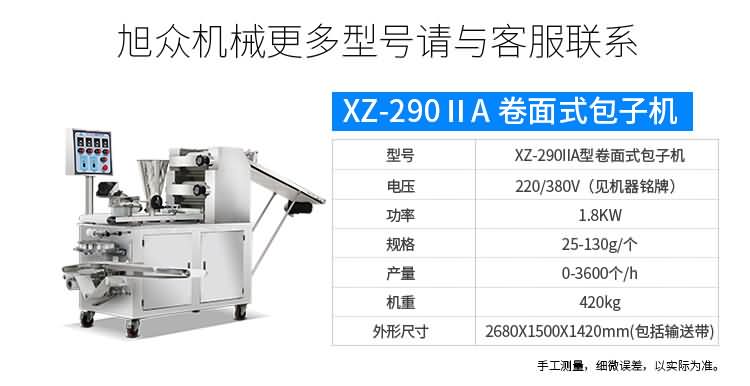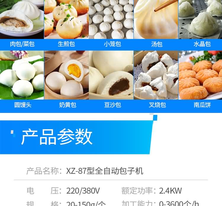 XZ-87型全自動包子機(jī),可生產(chǎn)各種肉包、菜包、肉菜包、小籠包、湯包、水晶包、圓饅頭、奶黃包、豆沙包、叉燒包、南瓜餅、煎堆等十幾種包餡制品。適用于賓館、飯店、學(xué)校、機(jī)關(guān)企業(yè)食堂、饅頭或包子加工廠、早餐工程店及速凍食品廠等單位??蓾M足不同客戶群體。免費(fèi)提供工藝技術(shù)。免費(fèi)上門培訓(xùn)指導(dǎo)安裝。