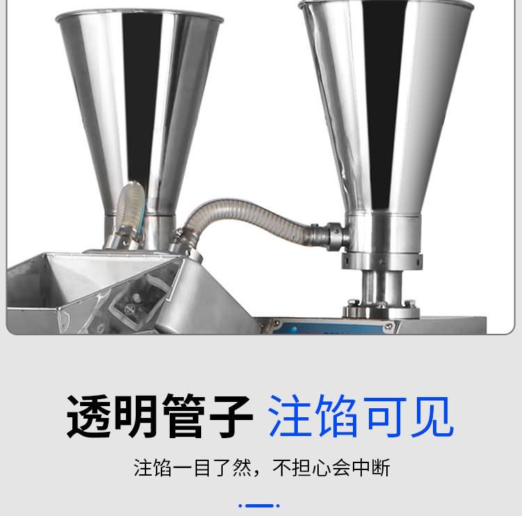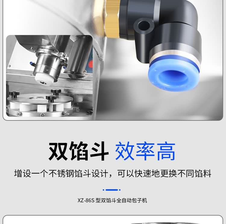 XZ-86S型雙餡斗全自動(dòng)包子機(jī)是在XZ-86全自動(dòng)包子機(jī)的基礎(chǔ)上,增設(shè)了一個(gè)不銹鋼餡斗設(shè)計(jì),可以更快速地更換不同餡料,從而提高了工作效率,而且性能更穩(wěn)定,使用壽命更長(zhǎng)。