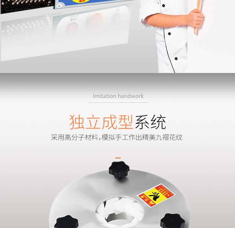 設(shè)備不傷面筋、仿手工捏花、比人工制作干凈、衛(wèi)生、成本低、效率高,是面食行業(yè)在高工薪時代的不二之選產(chǎn)品。操作面板可以旋轉(zhuǎn)、移動方便、占地空間小,適用于各種工作場所。本機(jī)提供免費上門培訓(xùn)指導(dǎo)、安裝、調(diào)試、面點工藝傳授。