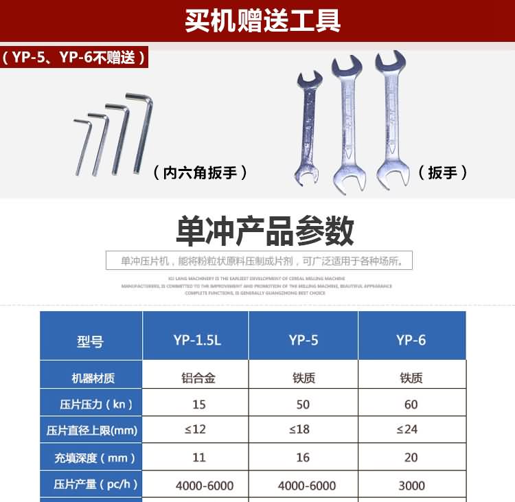 型號 | YP-1.5單沖 | YP-5 單沖 | YP-6單沖 |
