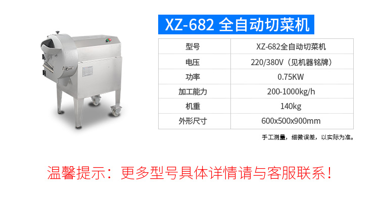 XZ-681多功能切菜機(jī),本設(shè)備可切葉菜可切片、絲、段等,葉菜類(lèi),切割尺寸: 1 - 60mm 可以調(diào)整,適用客戶(hù)群:食品廠,凈菜加工;學(xué)生營(yíng)養(yǎng)餐,餐飲連鎖,中央廚房,企業(yè)食堂等。
