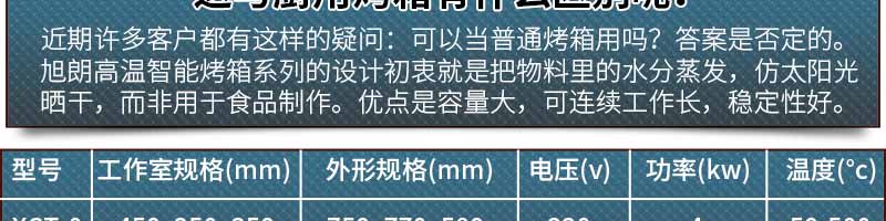 XCT型是帶鼓風(fēng)和恒溫的高溫干燥箱,本產(chǎn)品廣泛用于農(nóng)業(yè)生產(chǎn)、科學(xué)研究、醫(yī)療衛(wèi)生等單位化驗(yàn)室對試品的烘干、熱處理和加溫,但不適用于揮發(fā)性、易燃易爆等物品,以免引起爆炸。