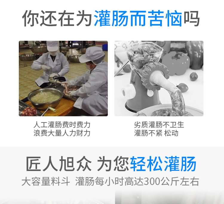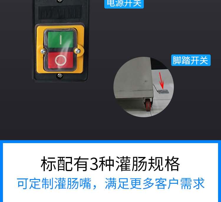 泵浦式灌腸機是加工制作香腸、火腿腸、親親腸、臺灣熱狗等漿狀的機械,以及做火鍋料的灌漿配套設備,本機外觀選用不銹鋼材料制造,外型美觀、體積小、噪音低、用電省,生產效率高,操作方便。