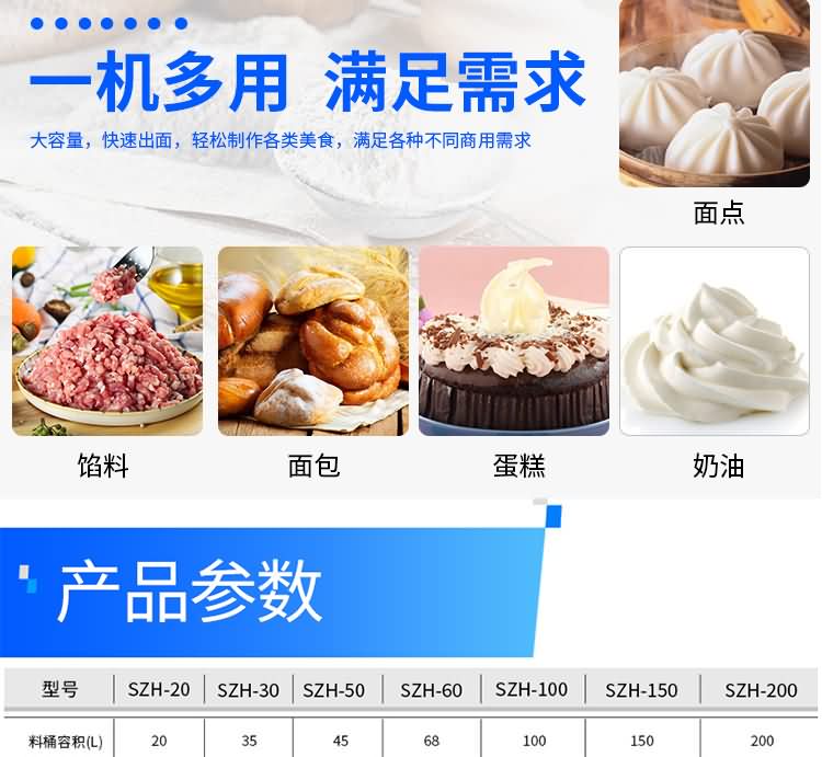 型號(hào) | SZH-100和面機(jī) | SZH-150和面機(jī) | SZH-200和面機(jī) |