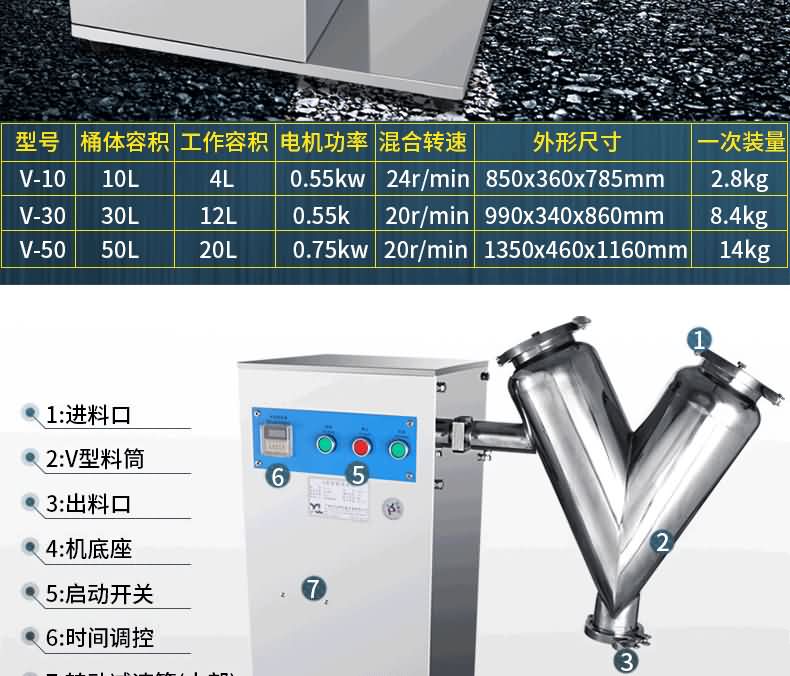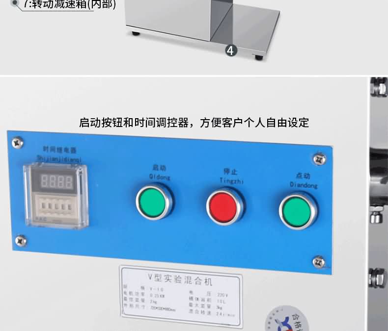 本設(shè)備采用手工進(jìn)料和封閉碟形閥出料結(jié)構(gòu),可以實(shí)行無粉塵操作,同時(shí)物料在混合時(shí)沒有機(jī)械擠壓和強(qiáng)烈摩擦,可以保持物料顆粒完好無損,本機(jī)混合筒采用不銹鋼制造,對(duì)混合物料無任何污染。另外,本機(jī)還裝有定時(shí)裝置,可以控制物料的混合時(shí)間。