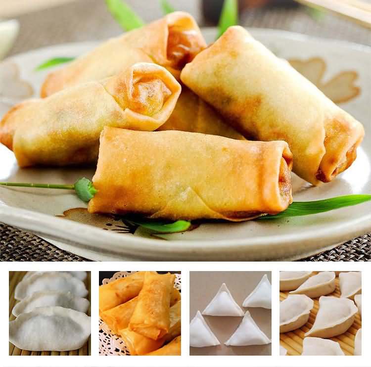 ?一機(jī)多用:只要更換模具,就可以制造不同的食品,如春卷、餛飩等,面皮厚度與餡量可調(diào)整;