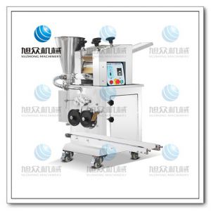 旭眾牌JGB-180型仿手工餃子機(jī)是我公司開(kāi)發(fā)生產(chǎn)的先進(jìn)的自動(dòng)餃子生產(chǎn)設(shè)備。設(shè)備包括主動(dòng)壓皮部分、自動(dòng)供餡部分、自動(dòng)包合成型部分、自動(dòng)成品輸送部分,并且只要更換模具,就可制鍋貼等食品。本機(jī)采用自動(dòng)軋制面皮后包制餃子的新工藝技術(shù),采用多道壓面輥壓面,壓面效果優(yōu)異,壓出的面皮筋道,進(jìn)一步提高所包出的餃子口感。