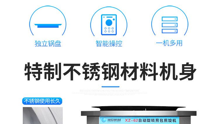 JGB-62自動旋轉(zhuǎn)煎包煎餃機能夠有效的防止餃子/包子燒焦,使每個餃子/包子受熱均勻等功能;外殼均由不銹鋼制造,外觀精美耐用,機器使用燃氣。