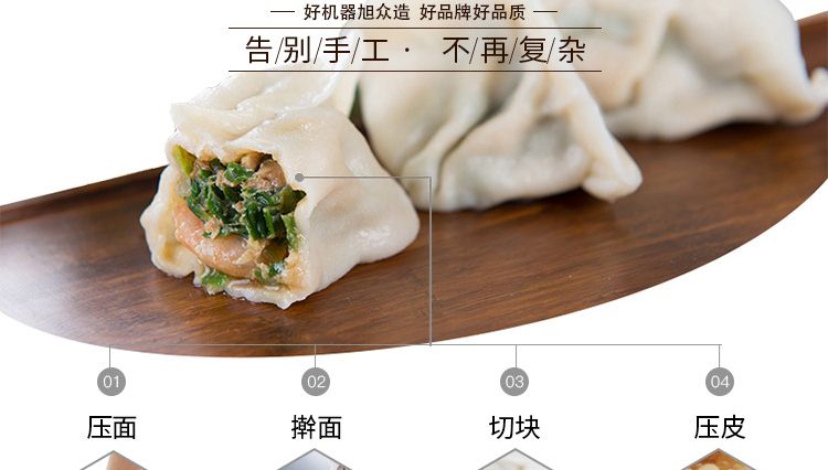 ◆JGB-801餃子皮機(jī)可自動(dòng)擺盤,節(jié)省勞動(dòng)力,效率高。