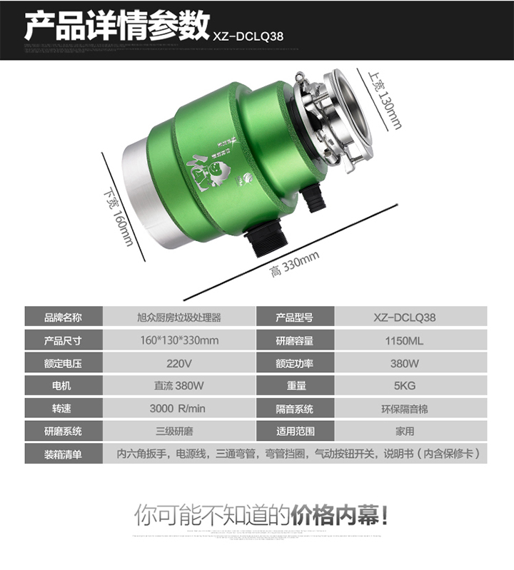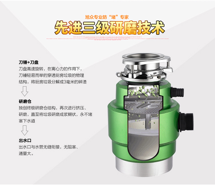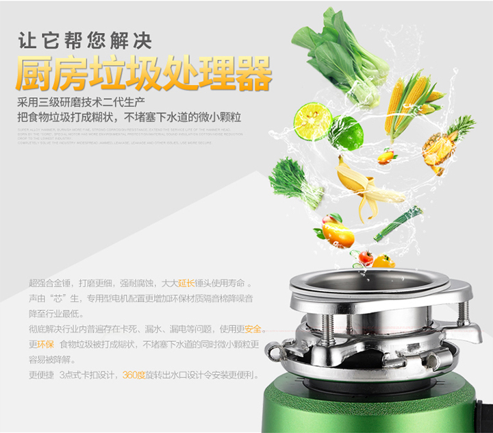 DCLQ38-廚房垃圾處理器,該機(jī)擁有獨(dú)特的粉碎功能,使所有垃圾研磨吸毒真正低于3毫米,用戶不用為管道堵塞而煩惱,粉碎后粗、細(xì)兩種垃圾通過(guò)濾孔自動(dòng)分離,成漿狀的細(xì)垃圾隨水流流入管道,粗的垃圾會(huì)稍停留在研磨倉(cāng)繼續(xù)粉碎,形成粉末狀后,再隨水流流入管道,客戶可以放心使用。