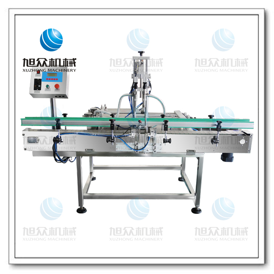 3、該灌裝生產(chǎn)線配置兩個(gè)灌裝頭,同步工作,效率高,物料可均勻地被擠壓灌裝到容器里。