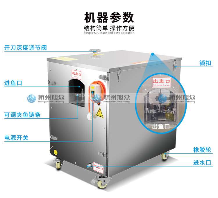 本機整機采用優(yōu)質不銹鋼制造,耐磨耐用,符合食品衛(wèi)生標準。把魚放在設備的入料口,輸送鏈條自動把魚送到切割刀片處將開肚/開背(魚肚朝上放為開肚,魚背朝上放為開背),適用于水產品加工廠,肉類加工廠,魚類罐頭廠,大型餐飲行業(yè)等單位。本產品不會對魚頭、魚尾、魚鰭造成損傷。
