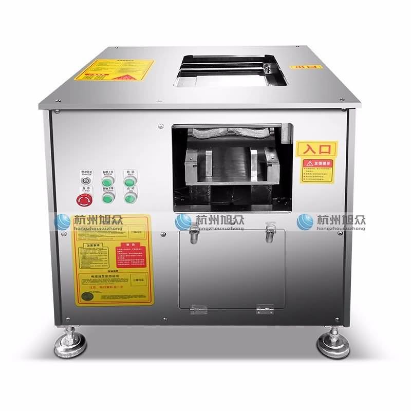 大型切魚片機(jī)(自動(dòng)進(jìn)料)采用多組刀片同時(shí)斜切的原理,完善了單刀切片效率慢和切片不均勻的難題,真正意義上實(shí)現(xiàn)了多片斜切。魚片機(jī)專業(yè)用于鮮品、雞胸、鴨胸、里脊肉片、牛肉、羊肉、各種魚柳,把需要處理的樣品放在刀梳上,機(jī)器可一次性自動(dòng)切割成片。每小時(shí)100Kg-150kg,日產(chǎn)量可達(dá)1噸以上。但是!!!此款設(shè)備最薄只能定做3mm,如要定做1.8-3mm以內(nèi)范圍的規(guī)格另?yè)衿渌~片設(shè)備!