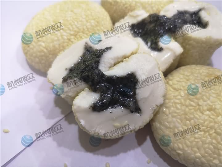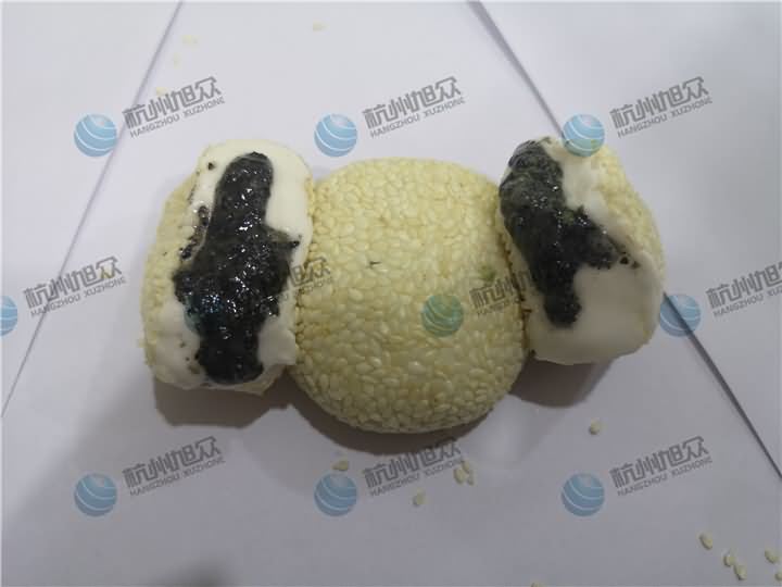 那么旭眾的麻球機(jī)究竟是怎樣的呢?那就是我們的多功能包餡機(jī)!昨日客戶將在自己食品廠和好的面團(tuán)、袋裝的黑芝麻餡料及裹在外層的白芝麻帶來了現(xiàn)場(chǎng),因?yàn)樗麄兡壳斑€是人工包芝麻成型,在人工投入方面非常的大,但是還是缺人,可以想象他們每日的生產(chǎn)量是有多大,于是他們帶著直接做好物料來到了現(xiàn)場(chǎng),只要能看到包餡機(jī)做出他們想要的效果便可,那么來看看XZ-99多功能包餡機(jī)做出來的麻球是怎樣的:
