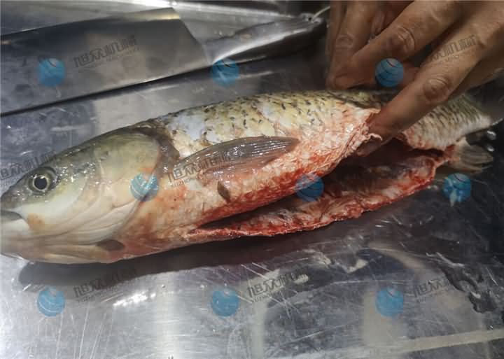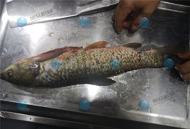 全自動殺魚機(jī)現(xiàn)場演示草魚開肚去鱗: