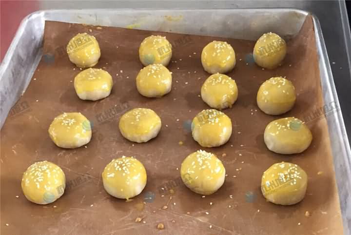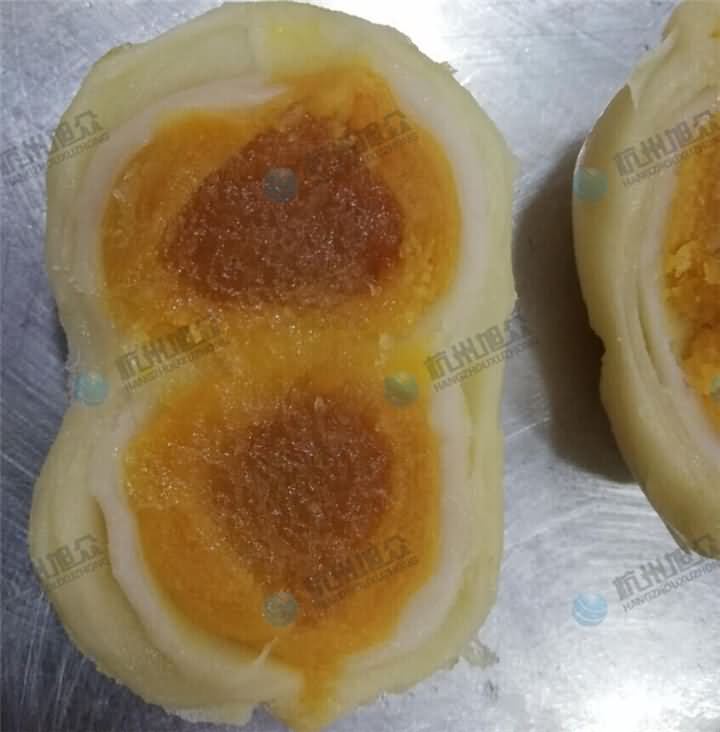 以上是人工手動加工而成的蛋黃酥,而我這次卻是要介紹用機器做出來的蛋黃酥,并且做出來的口感并不比人工差,我們自以為食品都是人工做的,其實背后也許說不定是蛋黃酥機在生產,只不過我們不知道而已,為什么這么說呢?前段時間某客戶咨詢到做蛋黃酥的機器,本來旭眾設備是沒有蛋黃酥機的設備,但是通過幾臺機器的組合使用,那么餡中餡包餡中餡的蛋黃酥也就不再是問題了,那么是哪幾臺機器的組合呢?
