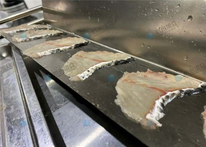 全自動(dòng)斜切魚片機(jī)切出來的魚片片片分明,厚薄均勻,外形美觀,效率又高,質(zhì)量有保障,這樣的切魚片機(jī)比請(qǐng)人工還要更劃算!