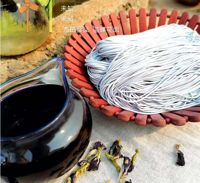 蝶豆花也稱藍(lán)蝴蝶,具有豐富的維他命A,C和E, 可以提高免疫力, 幫助和促進(jìn)皮膚的彈力和骨膠原, 東南亞國家的人多用它泡茶喝。蝶豆花中的有天然花青素,晾干水泡出來是藍(lán)色的,加入檸檬汁會變成紫色的,可以做食品染色劑或者調(diào)雞尾酒用。當(dāng)然也有地方用它來生產(chǎn)蝶豆花面條,客戶購買大型商用MT系列面條機(jī)專門用來生產(chǎn)蝶豆花面條和紫薯面等雜糧面條食品: