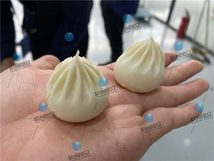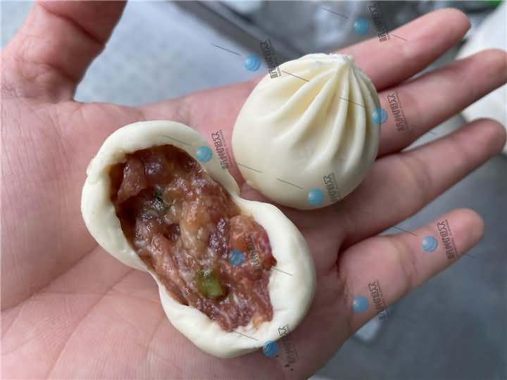 兩組包子成品都是由XZ-87全自動(dòng)包子機(jī)生產(chǎn)的14克和18克左右的小籠包,圖一包子皮薄,圖二看起來(lái)明顯比圖一的面皮要厚一點(diǎn),各個(gè)生產(chǎn)的包子面皮比例均勻,不切開(kāi)在沒(méi)有蒸之前是看不出有什么區(qū)別,等兩組都做好后,圖二因?yàn)槭前l(fā)面小籠包,所以需要拿去醒發(fā)后再蒸熟,而圖一死面小籠包直接拿去蒸七八分鐘就差不多就好了。想了解包子機(jī)撥打4008852117預(yù)約上門考察!