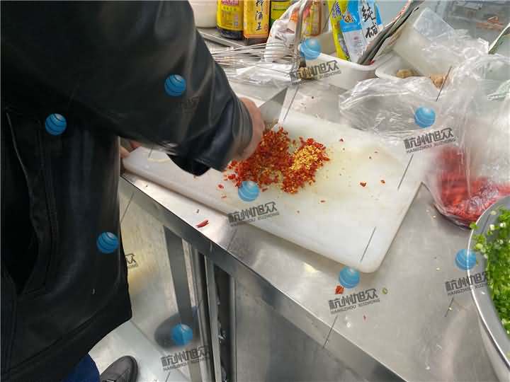 以往來考察包子機(jī)的客戶一般是2-3人便可,而今日來考察包子機(jī)的這波客戶至少也得十人,而且他們考察的包子機(jī)的方式特別的有儀式感,全員都行動(dòng)起來了。可以說小編我跟拍了一個(gè)上午加下午一點(diǎn)時(shí)間才終于結(jié)束,那么我就簡(jiǎn)單說下早上試的第一次,主要考察試機(jī)設(shè)備XZ-290AS卷面式包子機(jī),先拌餡料,蔥花豬肉酸加些調(diào)味料紅椒等等,包子做好后也蒸出來嘗了下口感,看著挺清淡的肉包子,等你嘗了兩口后就會(huì)發(fā)現(xiàn)這包子挺辣的。