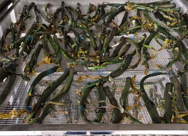 熱泵烘干機(jī)試烘菜苔前后對(duì)比效果