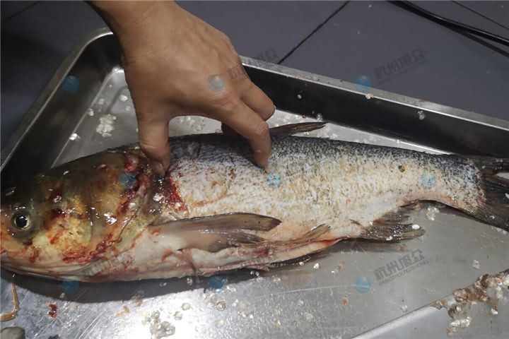 殺魚機去鱗效果非常明顯,白鰱身上的魚鱗去的很干凈,當然也并不說百分百能去干凈,畢竟殺魚機沒有思想,偶爾也不能將魚鰭下方的死角去鱗到,至于開肚刀深淺也是根據(jù)魚種類來調(diào)節(jié)的,白鰱和黑魚就是兩種不同體型的魚,那么開肚的那個刀殺白鰱的時候要稍微淺一點,太深的話就會容易刺破魚膽。當然至于如何調(diào)節(jié)殺魚機可電話4008852117咨詢客服!
