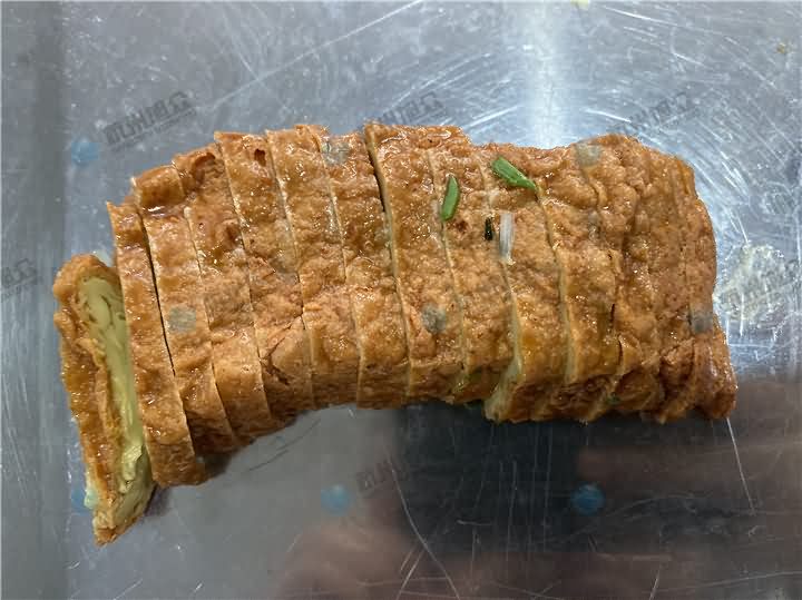素雞切片選擇哪款設(shè)備呢?自然選擇熟肉切片機(jī),該機(jī)切片厚薄可1-20mm可隨意調(diào)整,切片厚薄均勻,不信,可寄物料到旭眾機(jī)械廠,這不老板立馬寄了兩包素雞過(guò)來(lái),現(xiàn)場(chǎng)用熟肉切片機(jī)切素雞片,拍了視頻及成品再給客戶寄回去,5mm、3mm切片毫無(wú)壓力,那么我們來(lái)看熟肉切片機(jī)切素雞片效果:
