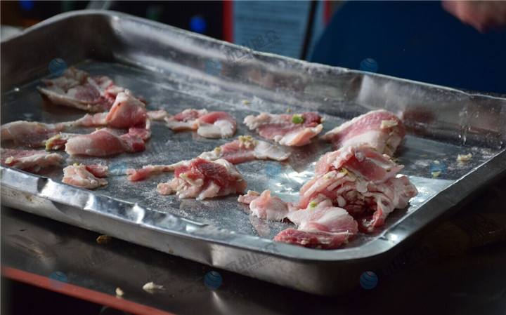 該怎么說呢,也不是說切五花肉不好切,而是如果要切肉片的話,還是比較建議客戶選擇專門的切肉機(jī),斜切五花肉這種帶筋膜切出來的肉片都不是特別的厚薄均勻,當(dāng)然具體還是看客戶怎么想,因為有些客戶就是需要這種斜切式方法來切五花肉,客戶試機(jī)完后覺得滿意就直接定購了,客戶都滿意那我們也只能提供切魚片機(jī)啦!