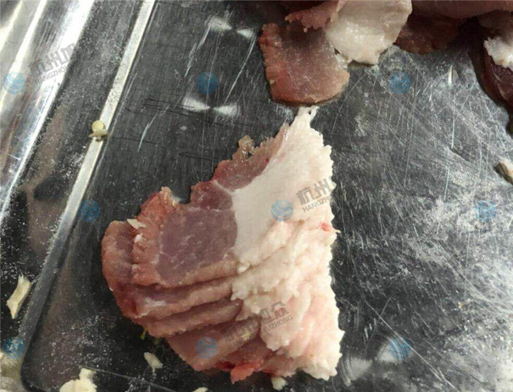 全自動切魚片機(jī)切五花肉片效果: