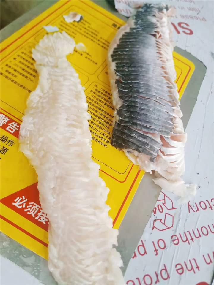 客戶寄魚肉遠(yuǎn)程直播切魚片機(jī)切片效果!
