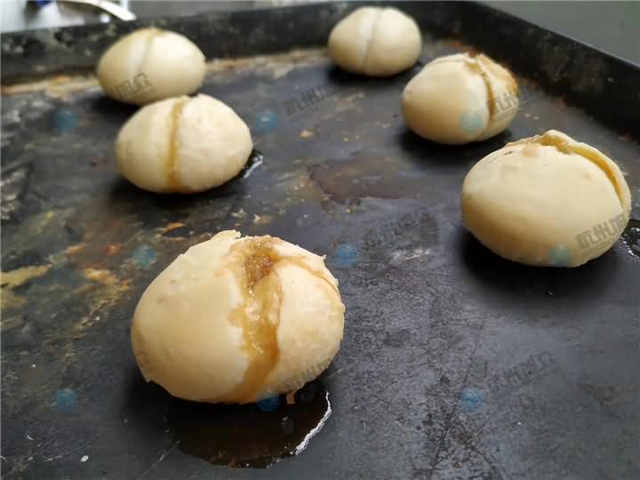 滿滿的蒜蓉餡酥餅,全自動(dòng)酥餅機(jī)制作的哦!