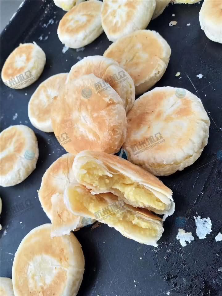 剛剛出爐的綠豆酥餅-全自動酥餅機制作