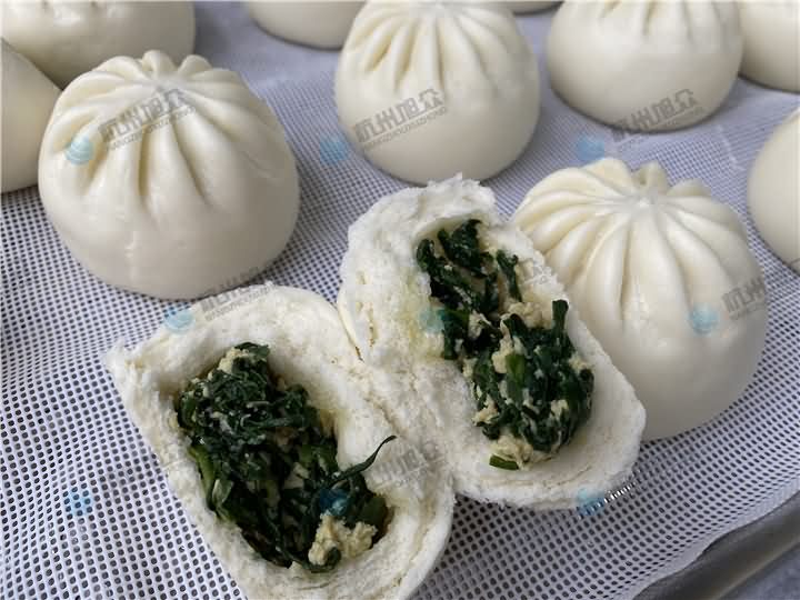 今日份現(xiàn)場操作290AS包子機做100g韭菜雞蛋餡包子效果: