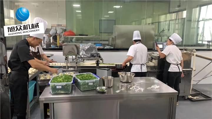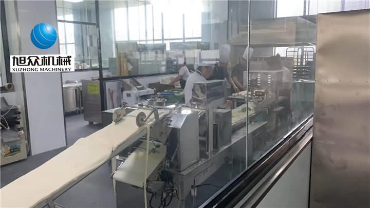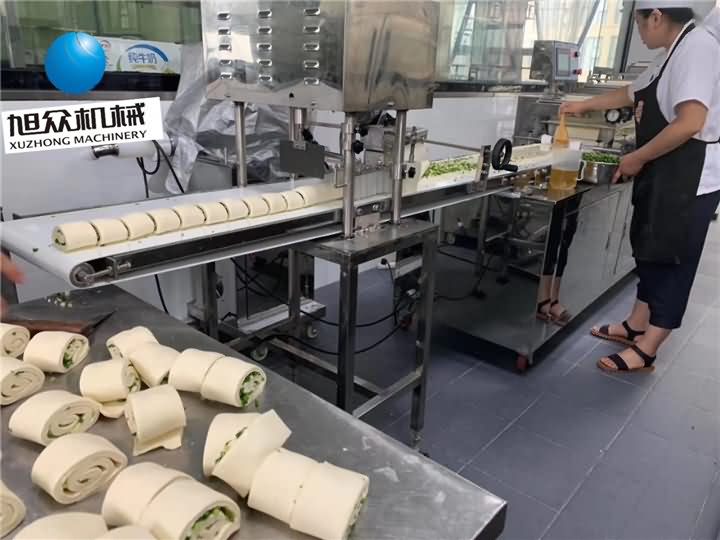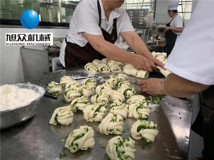 廣西某單位食堂使用我們275包子饅頭組合機(jī)~加長機(jī)身定制生產(chǎn)花卷效果杠杠的