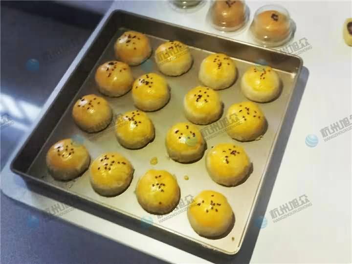 酥餅機生產(chǎn)線做的蛋黃酥效果!