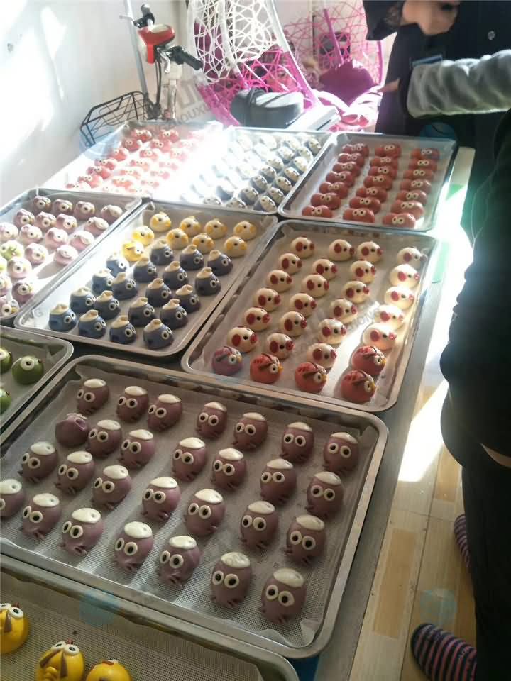 包子機(jī)自動(dòng)包餡成型后,客戶再手工后期加工成卡通包,太有創(chuàng)意了!