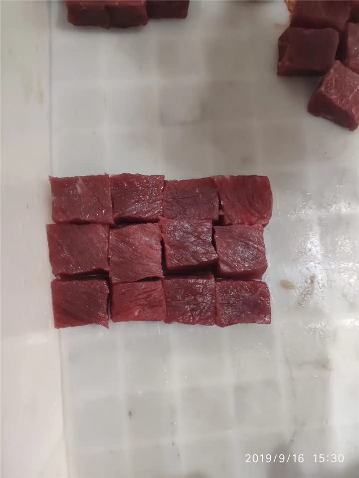這切出來肉丁效果真沒法說,光是看切丁機(jī)的機(jī)身便可知價(jià)格也不便宜,如果需要切出這種方方正正的肉丁,切丁機(jī)無疑是不二之選。更多關(guān)于切丁機(jī)詳情來電咨詢400-885-2117