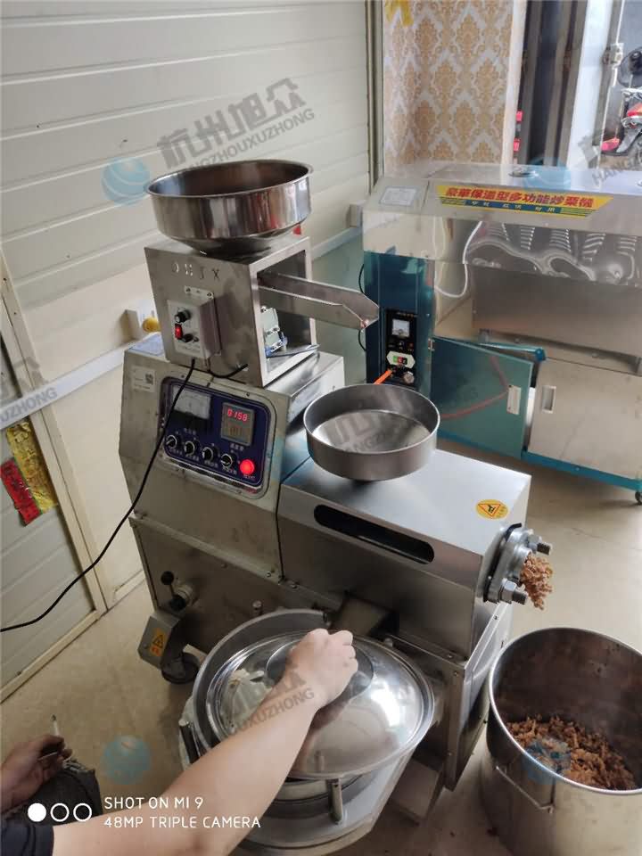 旭眾榨油機有小型也有大型,根據(jù)客戶產(chǎn)量需求及價格方面的考慮,XZ-Z505H小型立式榨油機也不失為一種選擇,只不過沒有師傅上門調(diào)試服務,不過榨油機操作非常簡單,可與師傅視頻一對一的指導培訓即可,客戶剛剛學會操作榨油機熟榨花生油的現(xiàn)場: